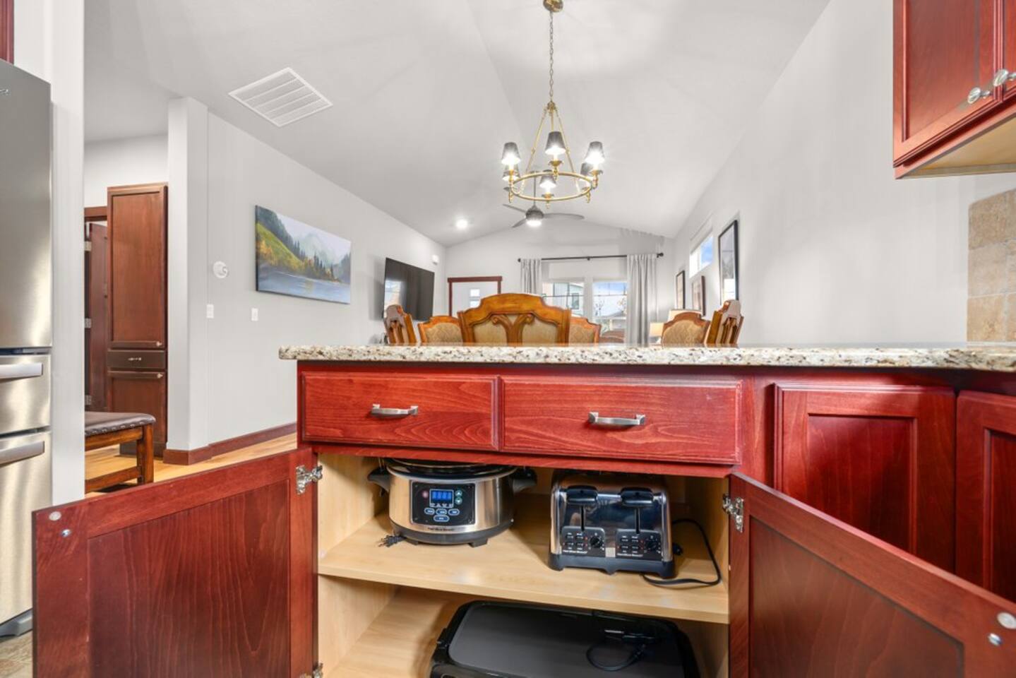 Relax in this stylish home in a gated community near Riverstone and downtown CDA. Sleeps 8 with DreamCloud mattresses, cozy electric fireplace, fast WiFi, smart TVs, washer/dryer, and pet-friendly fenced yard. The kitchen is exceptionally stocked with quality cookware, bakeware, small appliances, glassware, spices, oils, coffee/tea options, and all essentials for real cooking. BBQ on the patio or walk 8 minutes to DOMA Coffee and explore the Centennial Trail.