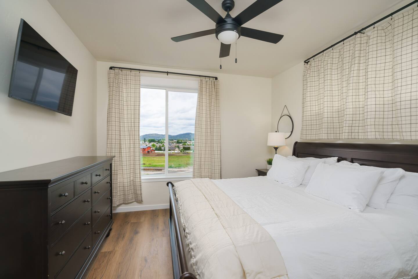 OUTDOOR SPACE • Sundance 7 person Hot tub. Installed May 2025. • Blackstone natural gas griddle / BBQ grill • Outdoor loveseat and chairs, coffee table BEDROOM 1 • King size bed, DreamCloud premium memory foam mattress, night stands with storage, dresser drawers, lamps, room darkening curtains, charging cable for phones, luggage racks, ceiling fan, clothes hangers, laundry hamper BEDROOM 2 • Queen size bed, DreamCloud premium memory foam mattress, night stands, lamps, charging cable for phone, blackout curtains, ceiling fan, luggage rack, laundry hamper, clothes hangers in closets BEDROOM 3 • Two twin size beds, memory foam mattresses, night stand with lamp, charging cable for phones, room darkening curtains, luggage rack, ceiling fan, clothes hamper, clothes hangers in closets, desk, chair KITCHEN • Hand mixer, 4-slice toaster, hot water pot, crockpot, blender, Instant Pot, electric griddle, food processer, 12-cup drip coffee maker, Kureg coffee machine. • Large selection of Pyrex bakeware, Kitchenaid stainless steel cooking pots, Wilson backing trays (muffin tin, cookie sheets, cake pans, bread pans, etc.), cutting boards, colanders, assortment of re-usable Tupperware containers, extensive collection of kitchen utensils, kid's plastic dish and utensil set. • Wide selection of glassware (martini glasses, wine glasses, champagne flutes, shot glasses, whiskey glasses, dinner glasses, and juice glasses), bartending tools, wine rack, and pitchers for mixing drinks. • 8-place setting of white dishes, several large serving platters and bowls, and appetizer trays. • Grill utensils, cleaning tools, and accessories • Plastic wrap, foil, parchment paper, Ziplock baggies (gallon, quart, sandwich, and snack sizes), and brown paper bags. • Hot pads, oven mitts, dish towels, drying mats, countertop dish drying rack, dish soap, hand soap, scrub daddy sponge, kitchen sponge, and other cleaning supplies. • Ground coffee, coffee pods, coffee filters, variety of Tazo tea, hot chocolate packets, and liquid coffee creamer, sugar packets, and artificial sweetener packets. • Cooking spices, grilling rubs, olive oil, vegetable oil, baking soda, baking powder, and vinegar. • Microwave, Full size range with 4 electric cooktop burners and convection oven settings, dishwasher, garbage disposal, full size refrigerator with ice maker. LIVING ROOM • Couch, gas fireplace, lamps, and fleece throw blankets. • 64" TV offer online streaming. To watch your personal online streaming apps, just sign into any of your accounts (Hulu, Netflix, Disney+ etc.) • Books, board games, and puzzles • High speed Spectrum internet with WiFi MAIN BATHROOM • Walk-in shower, individual use toiletries (soap bars, shampoo, conditioner, body wash, body lotion), blow-dryer, PooPourri spray, Neutrogena individually packaged makeup remover towelettes, cotton balls, Q-tips, blow-dryer, first aid kit, make-up mirror, full-size shower towels, hand towels, wash clothes, make-up removing wash clothes. SECONDARY BATHROOM • Shower-tub combination, individual use toiletries (soap bars, shampoo, conditioner, body wash, body lotion), PooPourri spray, Neutrogena individually packaged makeup remover towelettes, cotton balls, Q-tips , full-size shower towels, hand towels, wash clothes, make-up removing wash clothes. LAUNDRY ROOM • Full size washer and dryer, Gain liquid detergent, Gain fabric beads, Gain dryer sheets, iron, ironing board, Dyson cordless vacuum and attachments, and laundry baskets DINING ROOM • Table with setting for 8 CLOSET • Hot tub towels, extra bed linens, cleaning supplies (broom, Swifter mop, O-cedar easy ringing mop and bucket), oscillating fan, and tool box. GARAGE • Private parking for one car in garage and two vehicles in driveway • Snow shovel • 50A outlet for Electric Car charger in garage NEIGHBORHOOD • Walk to Prairie Falls Golf Course and Clubhouse, Iron Wood and Ice Restaurant, Suites at Prairie Falls Boutique Hotel, River City Pizzeria, Anchored Coffee and Bakery, Prairie Mini-market • Silverwood Theme Park - 25 min • Idaho Centennial Trail - 5 min • Triple Play Family Fun park - 16 min • Honeysuckle beach on Lake Hayden, Trader Joe's, McEuen park, Tubbs Hill, Downtown Coeur D'alene, Sherman drive, Spokane ~ 15-20 min - External security cameras are located on front of house facing street, and back of house facing street. There are no interior cameras or cameras facing the interior. - Please be aware that while we strive to accurately represent our property in photos and descriptions, minor variations may occur. By booking, guests acknowledge that the actual property may differ slightly from what is shown or described, and no refunds will be issued based on such differences. - The hot tub is provided as an amenity for your enjoyment. However, in rare cases where they may be unavailable or under maintenance during your stay, we are not able to offer refunds, discounts, or compensation of any kind.